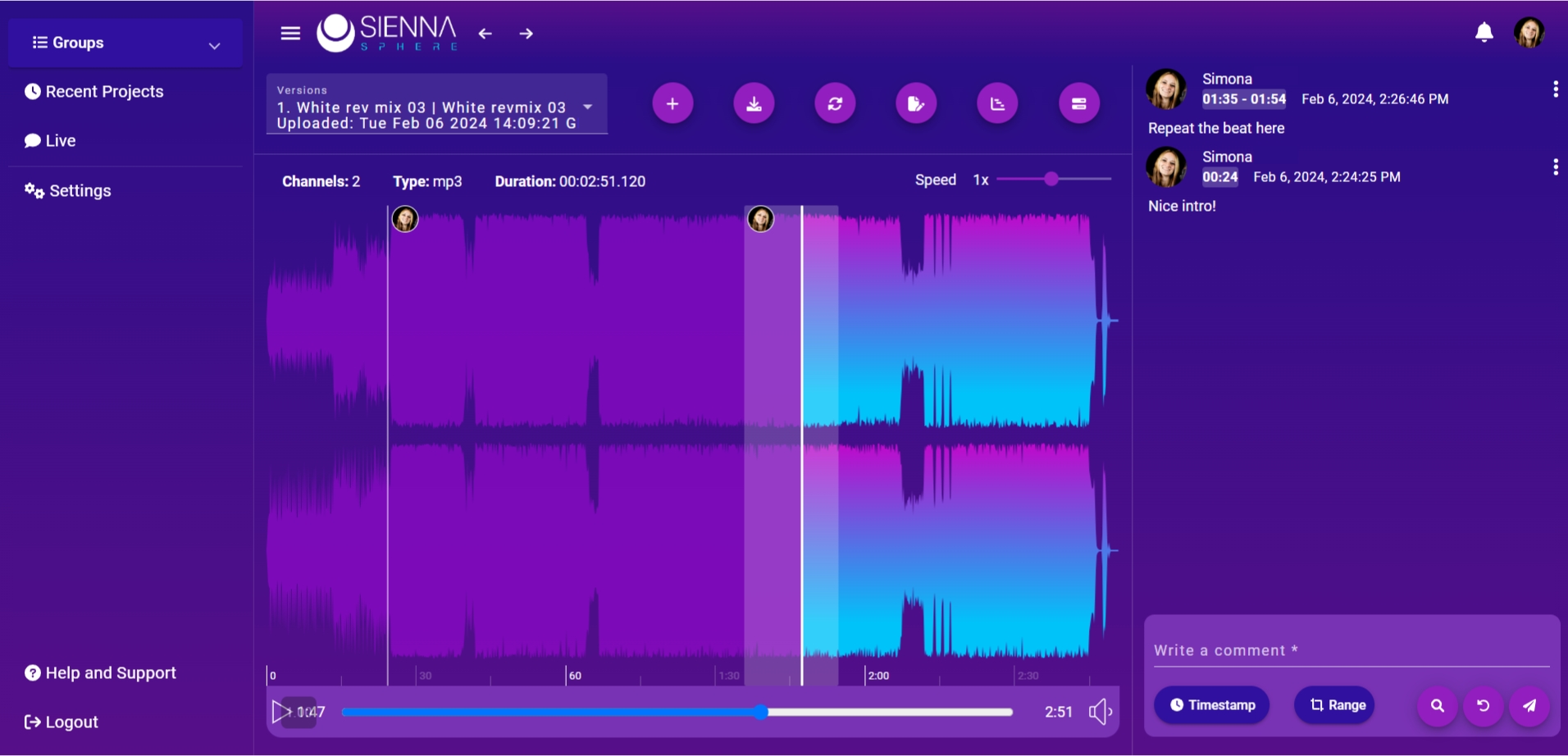 - Leave comments at specific timestamps or on waveform regions